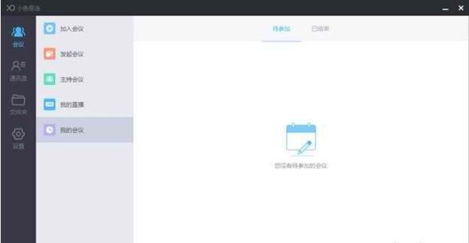 在导航栏上点击“会议”图标,即进入会议相关的功能页面,相应的菜单项包括:加入会议、发起会议、主持会议、我的直播、我的会议。