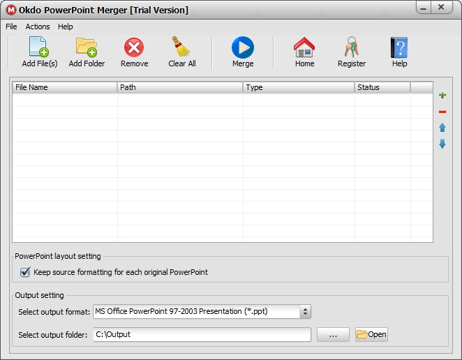 小编推荐:在经历了多次的更新与优化,Okdo PowerPoint Merger变得更加的人性化,也更加的简单易操作,PC下载网小编亲测,推荐给大家下载,感兴趣的小伙伴还可以下载斧子演示、maple、11g101图集、word2010破解版。