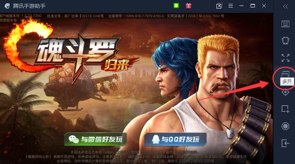 2、运行游戏后会弹出一个腾讯手游助手游戏窗口,在这个窗口右侧的功能列表中就可以看到“多开”的功能了。