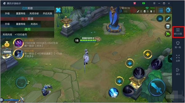 1、打开腾讯手游助手,进入游戏界面(例如王者荣耀),点击界面右边的“键位设置”进入设置功能