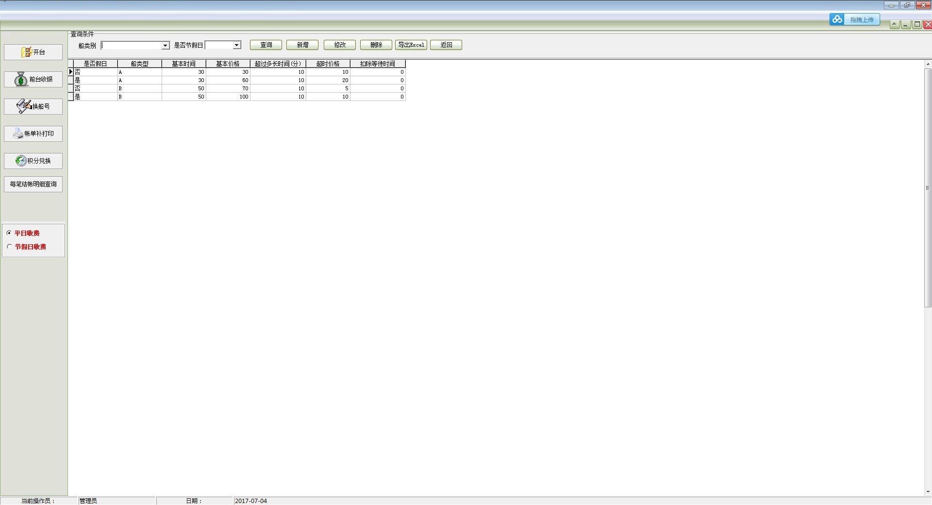 1.新增了游船按人数收费管理功能