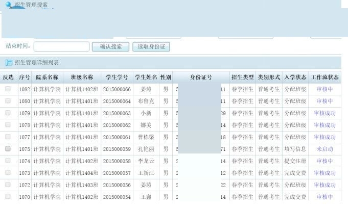 5、这里是招生管理界面,可以在这里为新生办理入学