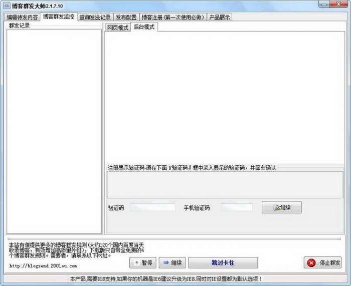 2、支持博客多,是一般同类软件的多倍,不光支持新浪博客,和讯博客这样的大博客群,也支持众多PR在2-3的小博客;