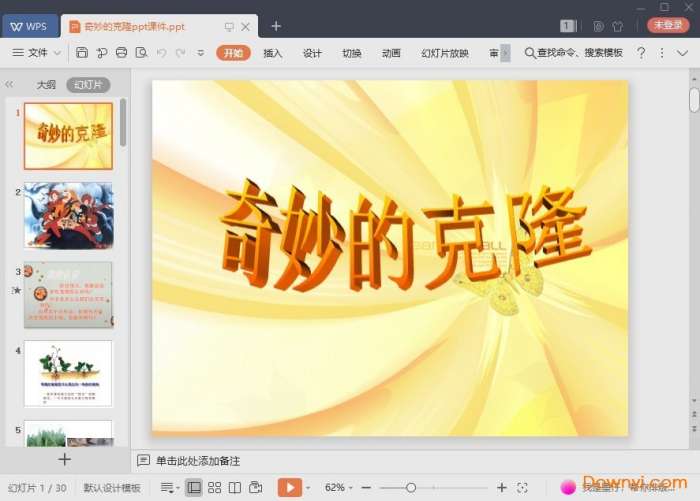 奇妙的克隆ppt课件帮助同学们理解克隆技术的发展以及意义,让同学们初步认识这项技术带来的一些成果。通过图文的方式来帮助你了解更多有意义的使用。想来体验一下吗?那就来体验吧!