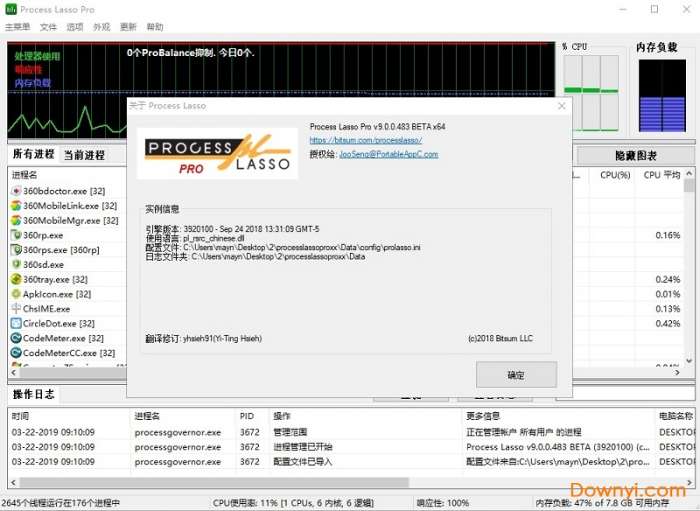 独特的调试级别的系统优化工具,主要功能是基于其特别的算法动态调整各个进程的优先级并设为合理的优先级以实现为系统减负的目的,可有效避免蓝屏、假死、进程停止响应、进程占用cpu时间过多等症状。同时它还具备前台进程推进、工作集修整、进程黑名单等附加特性。processlasso在后台实时智能优化您的系统,不会自动修改任何系统既有配置,适用于普通家庭用户和专业工作环境。