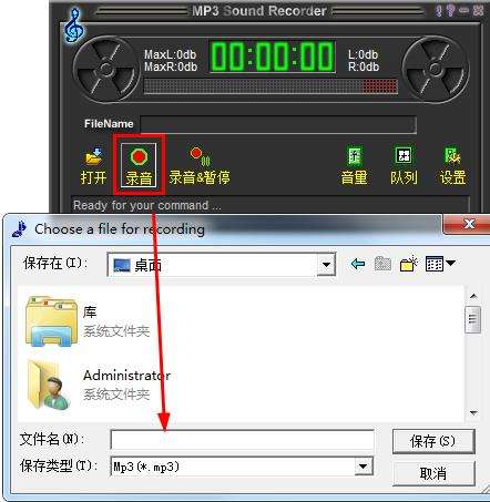 设置好后,点击录音,然后设置文件名即可开始录音。