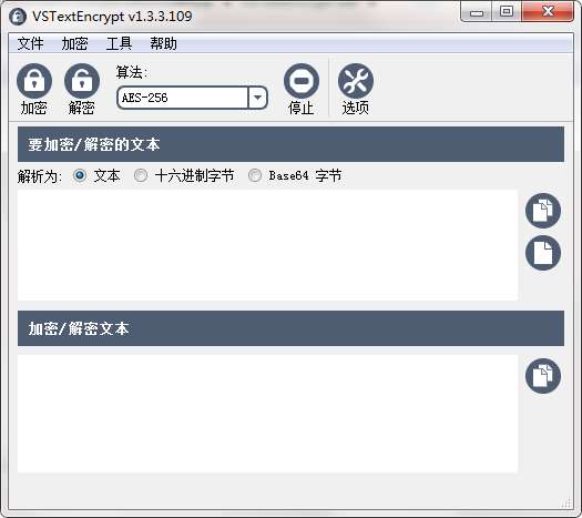 VSTextEncrypt提供文本加密功能,可以帮助你对自己的文本设置密码,你可以直接在软件上输入文字内容,也可以从TXT、doc等其他地方复制文字到软件粘贴,随后设置加密的算法类型,并且设置你文本的密码,这样你的内容就可以转换为密文,从而让其他用户不可以看到你的文本内容,对于加密一些重要的文字内容是非常有帮助的;VSTextEncrypt解密也是非常方便的,将得到的密文复制到软件解析就可以还原之前的文字内容!