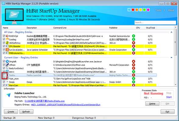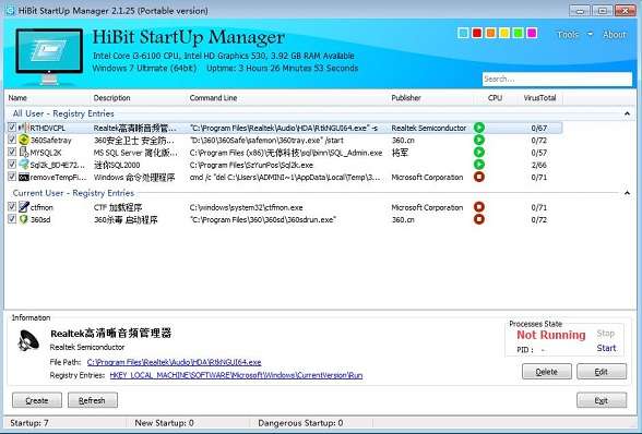 HiBit Startup Manager支持在主界面上管理软件
