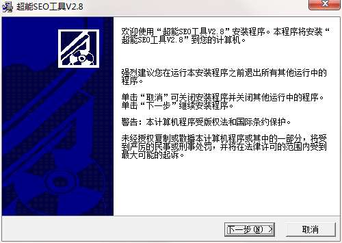3.双击打开,进入超能SEO软件安装界面,点击下一步