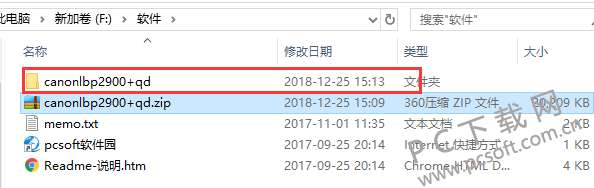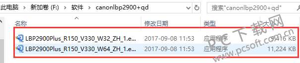 1、首先在本站下载佳能LBP2900打印机驱动软件包,如下图所示,我们可以得到一个压缩包,我们解压后会得到一个文件夹,打开文件件后可以看到有32位和64为两个exe文件,我们根据自己电脑的系统来选择双击exe文件,就可以再次解压出一个文件夹。