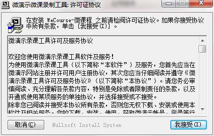 3.双击打开,进入微演示录课工具软件界面,阅读安装许可协议,点击我接受
