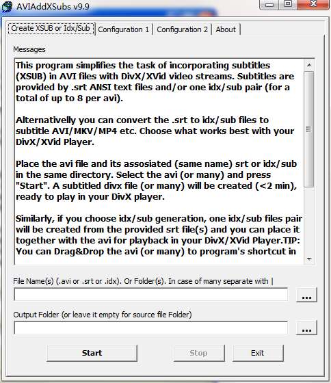 AVIAddXSubs官方版是一款实用的AVI视频文件字幕编辑软件。AVIAddXSubs最新版能够快速,方便地向你的avi文件添加.SRT、idx/sub 文件中等字幕文件(ANSI文本,最多8个srt文件)。AVIAddXSubs官方版有多种选择来配置的字幕至于字体,字体大小,颜色,轮廓,位置等是通过一个转换的SRT另一所取得的字幕是为位图格式。
