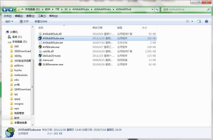 2.解压AVIAddXSubs软件,运行“EXE.文件”