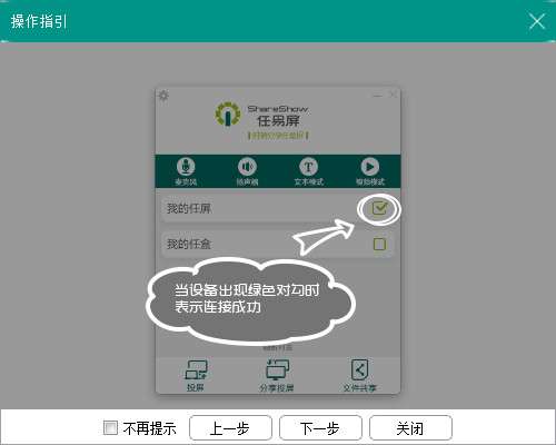 当设备出现绿色对勾时,表示连接成功