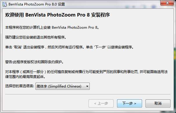 3.双击打开,进入PhotoZoom软件界面,选择安装语言,点击下一步
