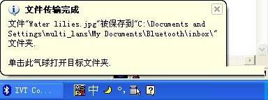 3.文件传输完成后,在您选中的设备上会弹出消息提示您文件保存的路径