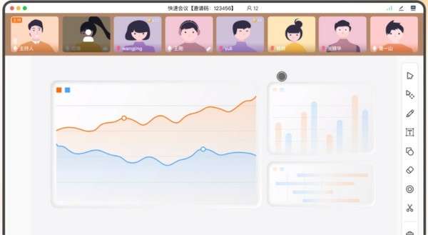 【协作白板】支持激光笔、画笔、文字、图形等多种工具,辅助演示