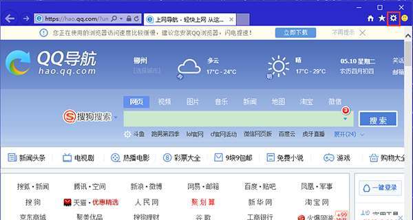1、打开ie11浏览器,点击小编用红框标记的位置的齿轮: