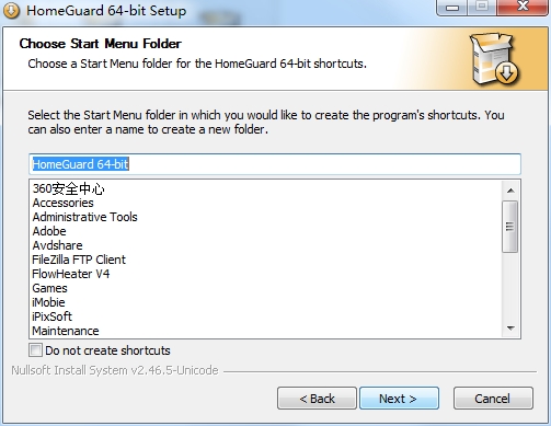 设置一个软件图标保存的快捷文件夹,也会是默认官方的“HomeGuard_x64”文件夹