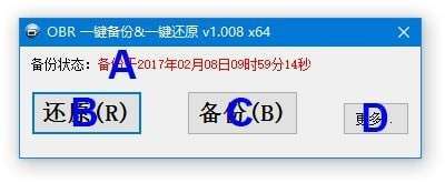 A、备份状态:首次使用或未备份时显示“尚未备份”;若已经备份,则显示“备份时间和盘符位置”;