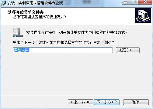启动setup.exe程序,点击安装,这里提示您需要将软件安装到什么地方D:Program Files实创软件实创信用卡管理软件专业版