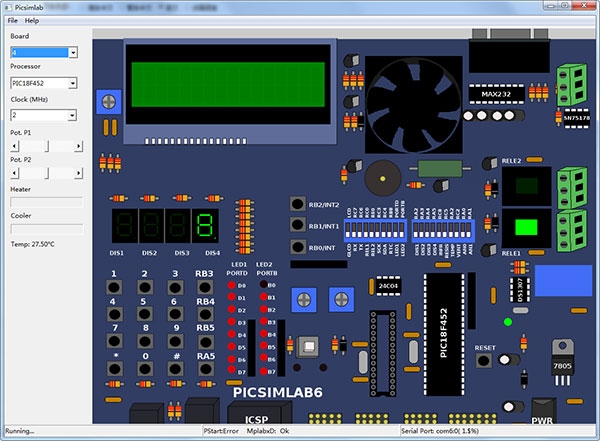 它模拟了使用一个PIC16F628A的Labtools开发板McLab1