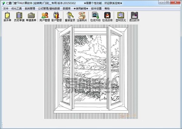 仁霸门窗下料计算软件电脑版是款针对建筑行业所打造的门窗设计计算工具。仁霸门窗下料计算软件正式版提供了图形设计、材料选取、价格计算、报表管理等多个方案。仁霸门窗下料计算软件中主要功能有型材优化、线材优化、公式管理、基础数据、数据库、用户管理、客户管理、历史单据、单据清单等功能。