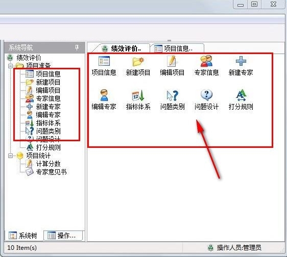 6、这里可以查看项目信息、查看问题的类别、查看打分打分规则、查看指标体系、可以编辑专家的信息