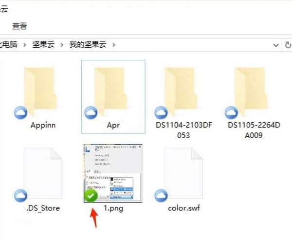 上图中,只有 1.png 这个图片时在电脑的硬盘里保存,其他文件与文件夹都只是保存了个样子(真的只是样子,不占用磁盘空间),当你点击任何一个有云角标的文件时,坚果云就回帮你现场下载回来。