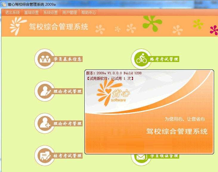 省心驾校综合管理系统是一套对驾校日常事务进行管理的办公软件,集强大的数据查询、统计、报表输出于一身,具有简单、易用、界面美观的特点。通过使用驾校综合管理系统能增强驾校工作管理的信息化建设,能很好的掌握驾校工作中的各种信息。实现学员基本信息的管理,理论考试和理论补考管理,桩考考试和桩考补考管理,路考考试和路考补考管理,能轻松的查询到各学员的考试情况和补考情况;实现对学员交费管理,学员领证管理,驾校职工信息管理,能轻松的统计出学院的交费金额;实现对驾校汽车信息管理,汽车维修管理,汽车加油管理,汽车保养管理,汽车报废管理等,从而实现全程跟踪汽车情况。驾校综合管理系统的功能覆盖驾校工作的方方面面,同时软件采用人性化、就变化设计,使驾校工作管理变得更轻松,更省心。