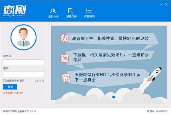 商刷一直致力于百度下拉软件、百度相关搜索软件的运营和研发,我们一直坚信,没有最好的百度刷下拉相关软件,但我们一直在为做最好的百度下拉相关软件而努力!相信我们不是最好的,但我们一定是更好的!以最小的成本,做最大面积的信息推广。