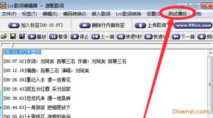 5、修改完成后,您可以点击软件顶部菜单的【测试播放】查看歌词是否正确,如有有误,您继续修改。