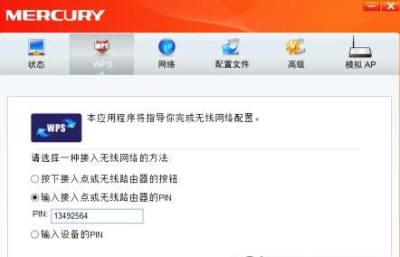 1) 选中“输入接入点或无线路由器的 PIN”项(如下图),然后在 PIN 的空格里输入无线路由器或 AP 的 8 位 PIN 码(即 Access Point PIN,请参见无线路由器或 AP 的底部标贴),点击连接按钮。