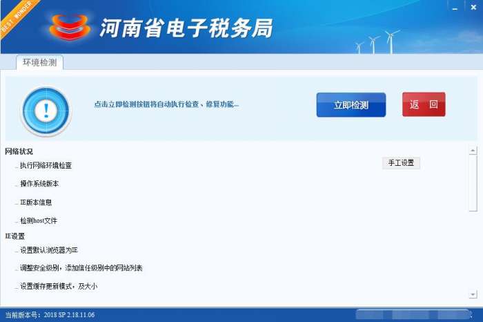 河南省电子税务局环境检测修复工具官方版是一款非常强大的系统环境检测工具,河南省电子税务局环境检测修复工具可以当用户在进行交税查税时遇到了无法正常登录的情况,可以用这款工具来进行环境检测。河南省电子税务局环境检测修复工具软件还提供用户登录访问,用户可以通过这款工具在网上申报办税。