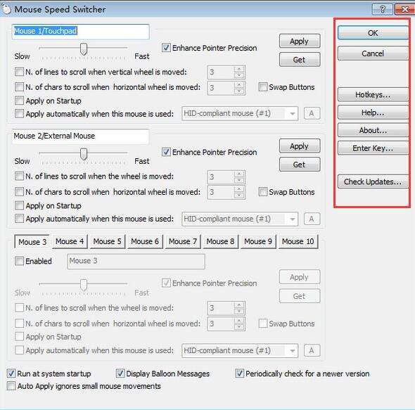 3.配置您的首选热键。点击“确定”和“MouseSpeedSwitcher准备使用!只需按您配置的热键,或双击托盘图标和鼠标设置将切换。