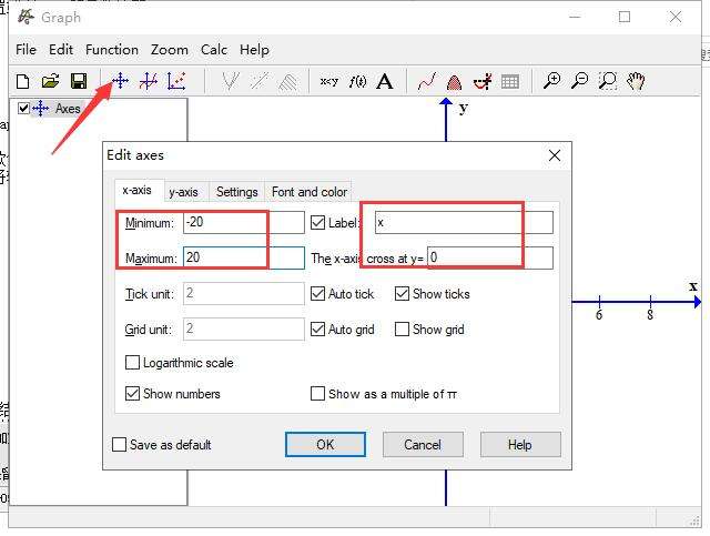 3、点击图示图标输入相应函数和数值范围,点击“OK”即可自动生成函数图