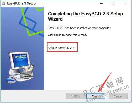 6、EasyBCD安装完成,我们点击界面下方的“Finish”选项就可以关闭安装界面打开软件来使用了。