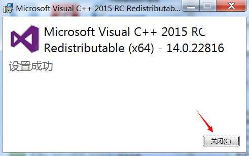 3、vc++2015运行库安装完成,点击“关闭”结束安装;