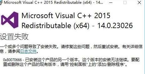 Win10安装VC++2015失败报错“0x80070666”怎么办?