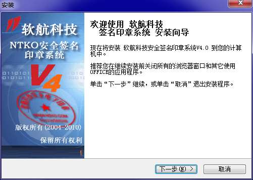 3.双击打开,进入NTKO电子印章系统软件界面,点击下一步