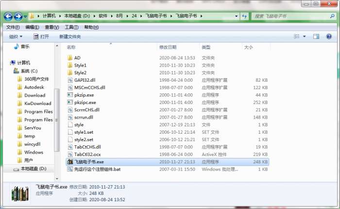 2.解压飞鼠电子书软件,运行“EXE.文件”