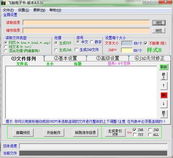 飞鼠电子书官方版是一款好用的电子书阅读软件。飞鼠电子书最新版内置多个JAR阅读器样式,可以根据你的喜欢选择生成电子书样式。可以保存多个文本,设置一个读取的地址,支持广告功能,将小说上有的广告代码删除。飞鼠电子书官方版割的时候不会因为到达指定大小在小说某一段落中部分割文件,而是在上一章节结束处分开。