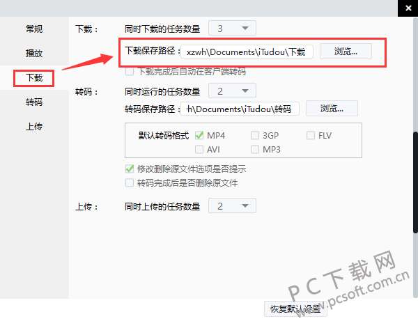 2、打开设置界面后,点击左侧的【下载】,然后在右侧界面中找到下载保存路径,就可以找到您下载视频的存放位置。