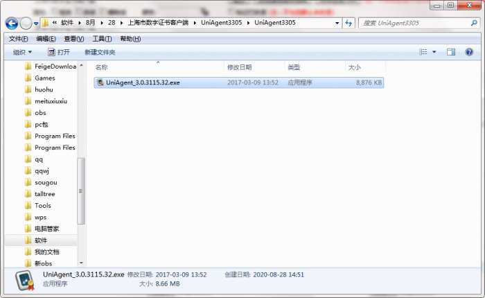 2.解压上海市数字证书客户端软件,运行“EXE.文件”
