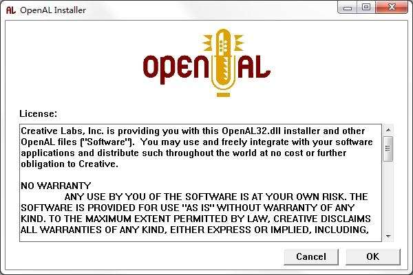 5.用于Windows的OpenAL安装程序将安装OpenAL 1.1库,从而使核心的OpenAL业务以及诸如EAX和EFX效果扩展的支持。