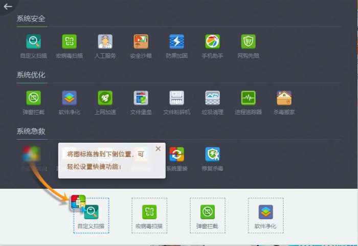 杀毒360软件只能进行基本的扫描杀毒?那可就大错特错了,点击进入软件“功能大全”,内有“系统安全”、“系统优化”和“系统急救”等安全功能,还不快去体验一下?