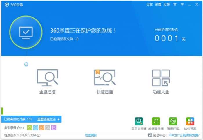 依托360安全中心的可信程序数据库,实时校验,360杀毒的误杀率极低。