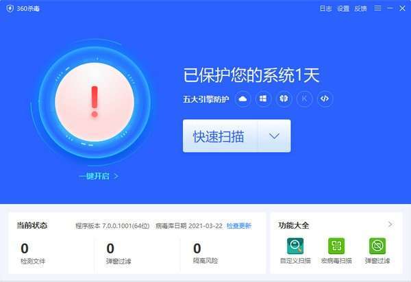 7.0 全新改版,防护效果更清晰,一键查杀更快捷。