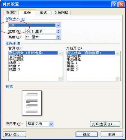 4、打开一个Word文档之后,点击页面设置 - 纸张,选择设置的自定义纸张,然后点确定;