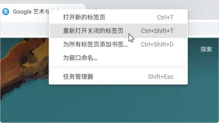 您也可以使用键盘快捷键:Ctrl + Shift + T